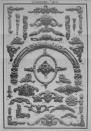 Die Entwicklungsphase begann mit Stuck- und Gipsornamenten, wobei die Zerbrechlichkeit und Wasserempfindlichkeit ein baldiges Umdenken mit sich brachte. Die Holzpressung in Stirnholz war der nächste Schritt, wobei sich das Abzeichnen der harten Jahresringe an der Oberfläche als störend erwies.
